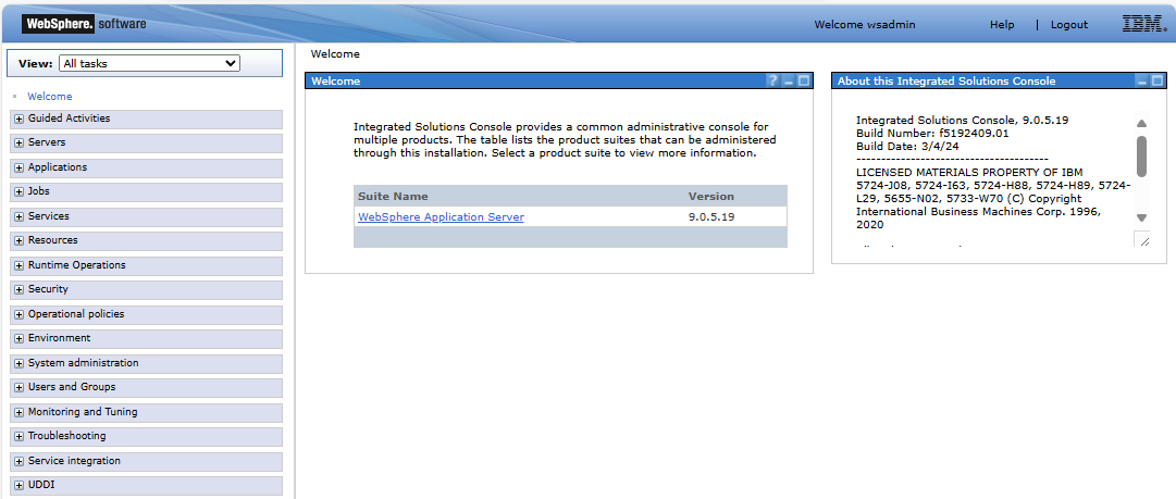 Sign in using the WebSphere administrator credentials you provided when setting up the Cluster configuration. After signing in, you see the following page.