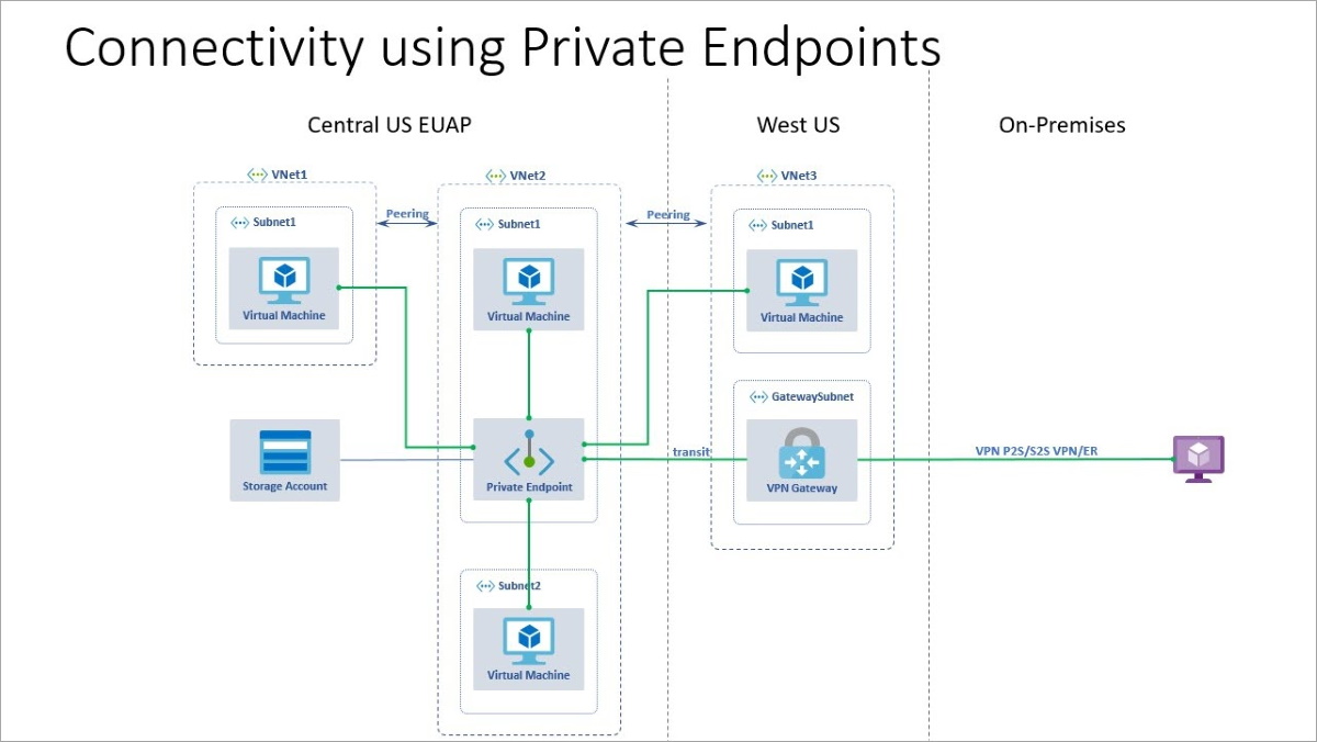 You can use private endpoints with ExpressRoute, point-to-site VPNs, and site-to-site VPNs.