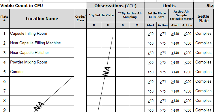 Here 4 type of response required (Complie,Alert,Action,NA) from 2 and 2 different cell.