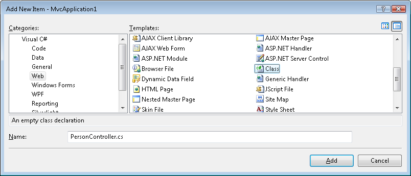 The ASP.NET MVC controller is just a class. If you prefer, you can ignore the convenient Visual Studio controller scaffolding and create a controller class by hand. Follow these steps:
