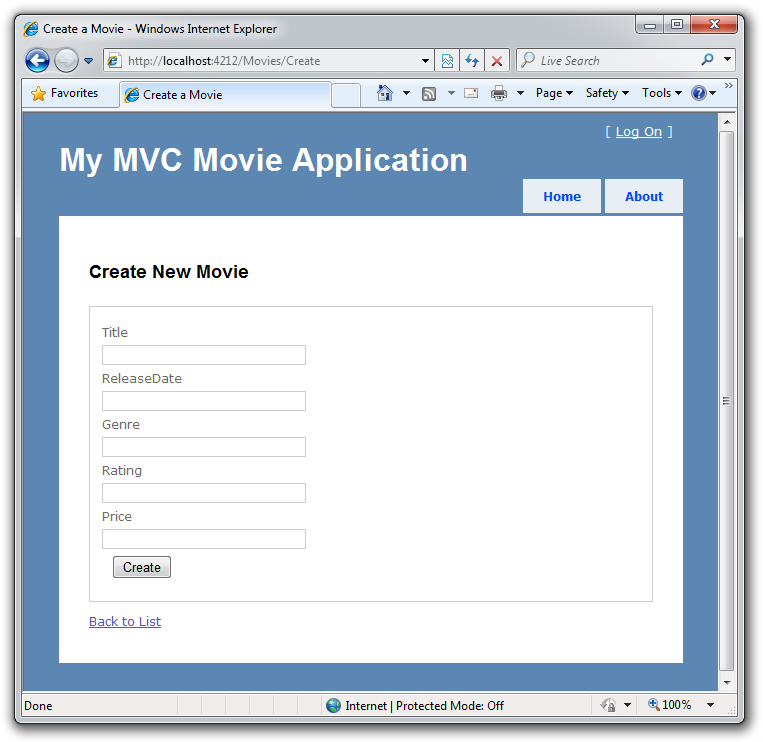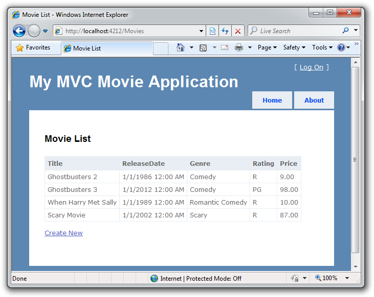 Let's make our first ASP.NET MVC Web Application using Visual Web Developer 2010 Express. We'll make a little Movie list application that will let us create and list movies.