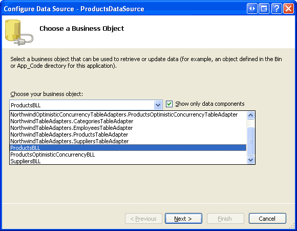 Configure the ObjectDataSource to Use the ProductsBLL Class