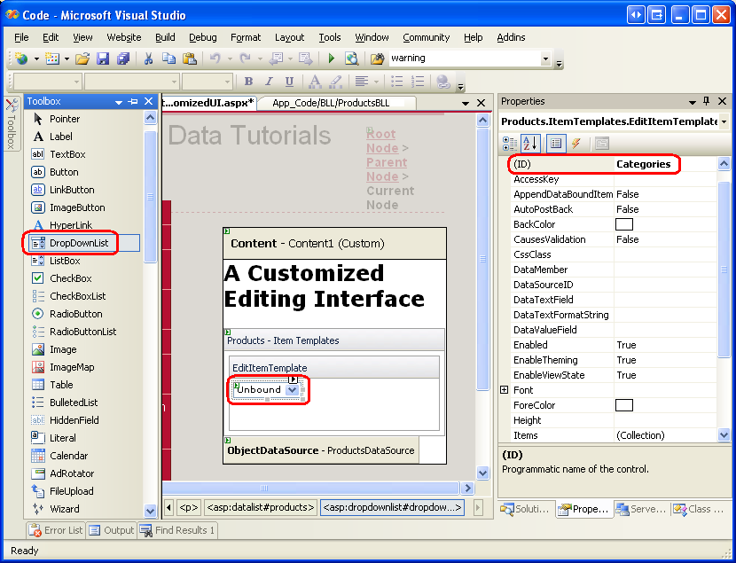 Figure 4: Add a DropDownList for the Categories (Click to view full-size image)