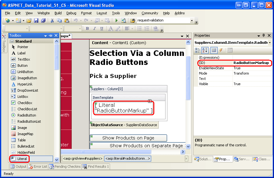 Using a Literal Control to Inject Radio Button Markup