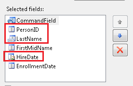 In the Selected fields box, delete PersonID, LastName, and HireDate. You typically don't display a record key to users, hire date is not relevant to students, and you'll put both parts of the name in one field, so you only need one of the name fields.)