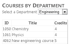 You'll create a page that adds courses that are assigned to departments. The departments already exist, and when you create a new course, at the same time you'll establish a relationship between it and an existing department.