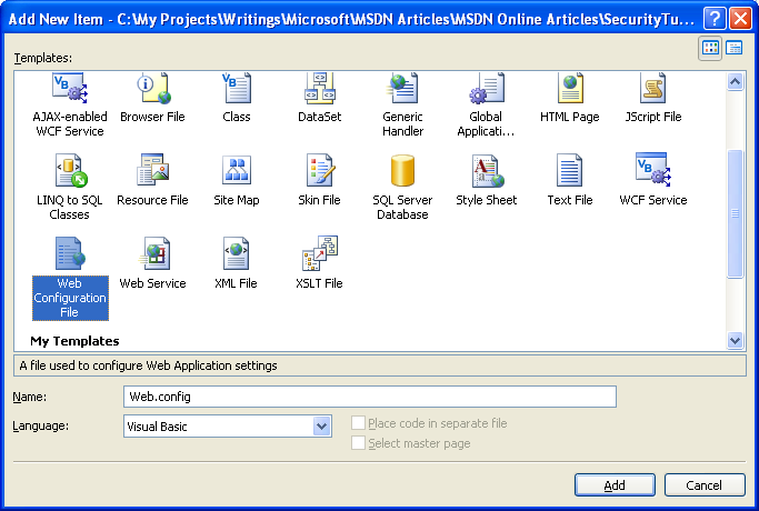 Figure 07: If Your Project Does Not Yet Include Web.config, Add It Now(Click to view full-size image)