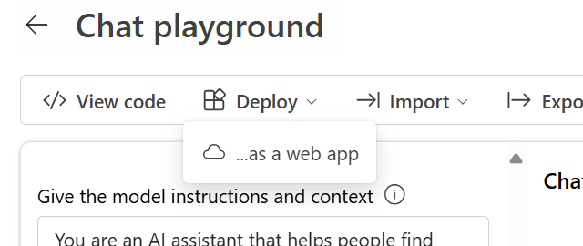 This gives you the option to either deploy to a standalone web application, or a copilot in Copilot Studio (preview) if you're using your own data on the model.