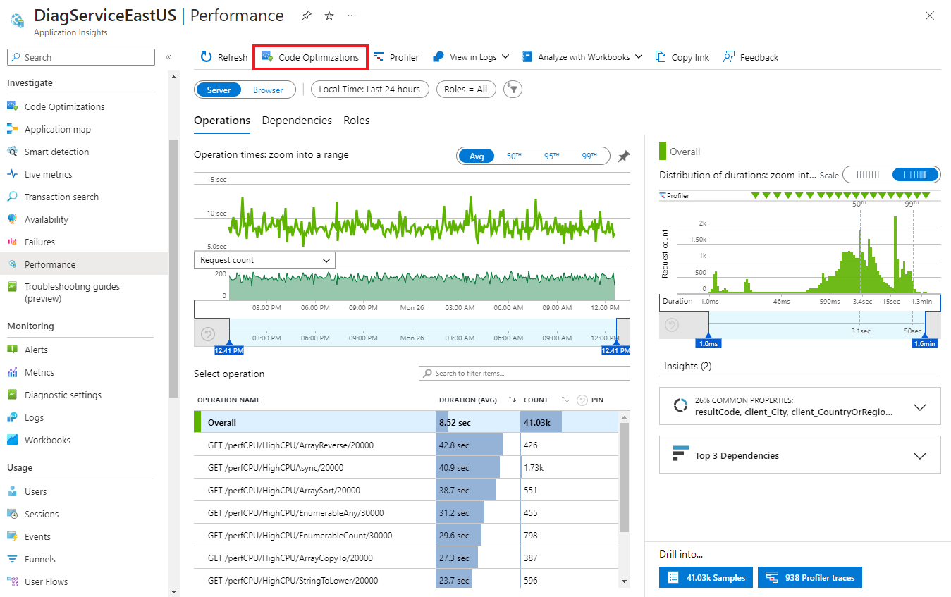 3. In the Performance blade, select the Code Optimizations button in the top menu.