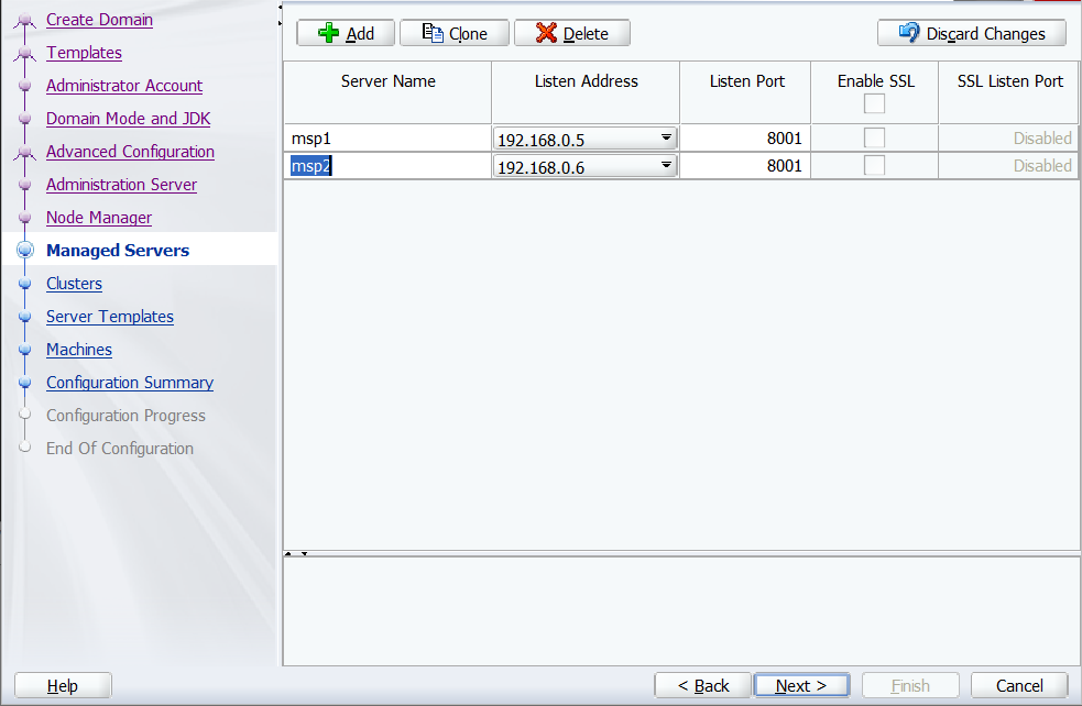 • The managed VMs (VM names mspVM1 and mspVM2) have two managed servers running.