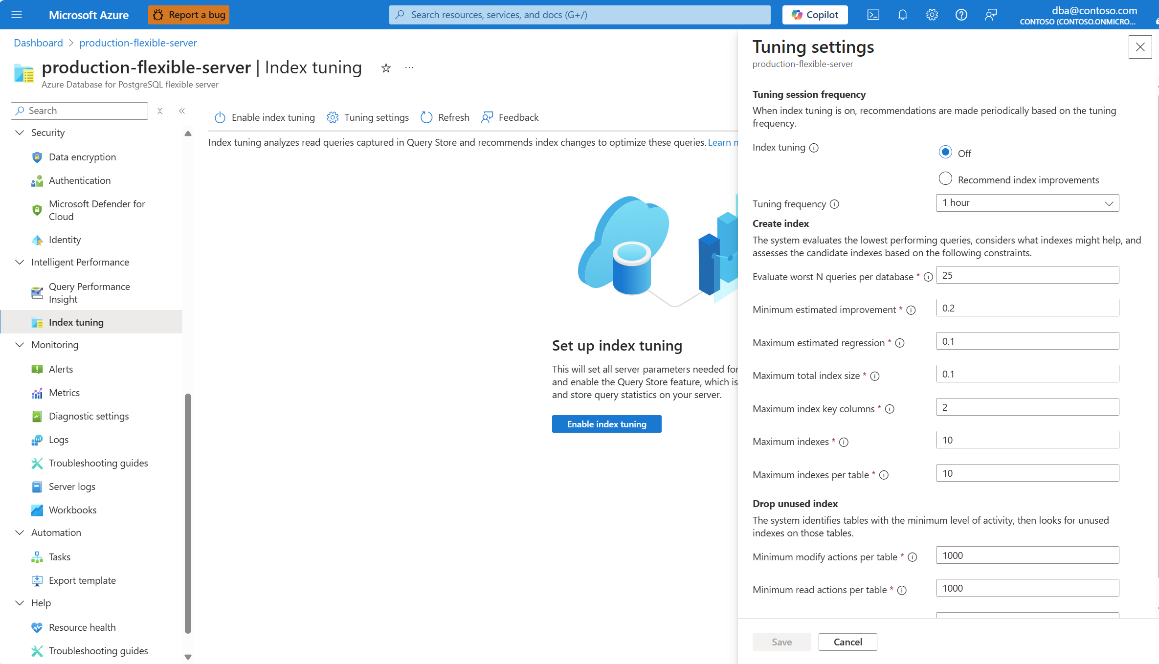 Also, you can show the list of all index tuning settings in an existing server via the az postgres flexible-server index-tuning list-settings command.