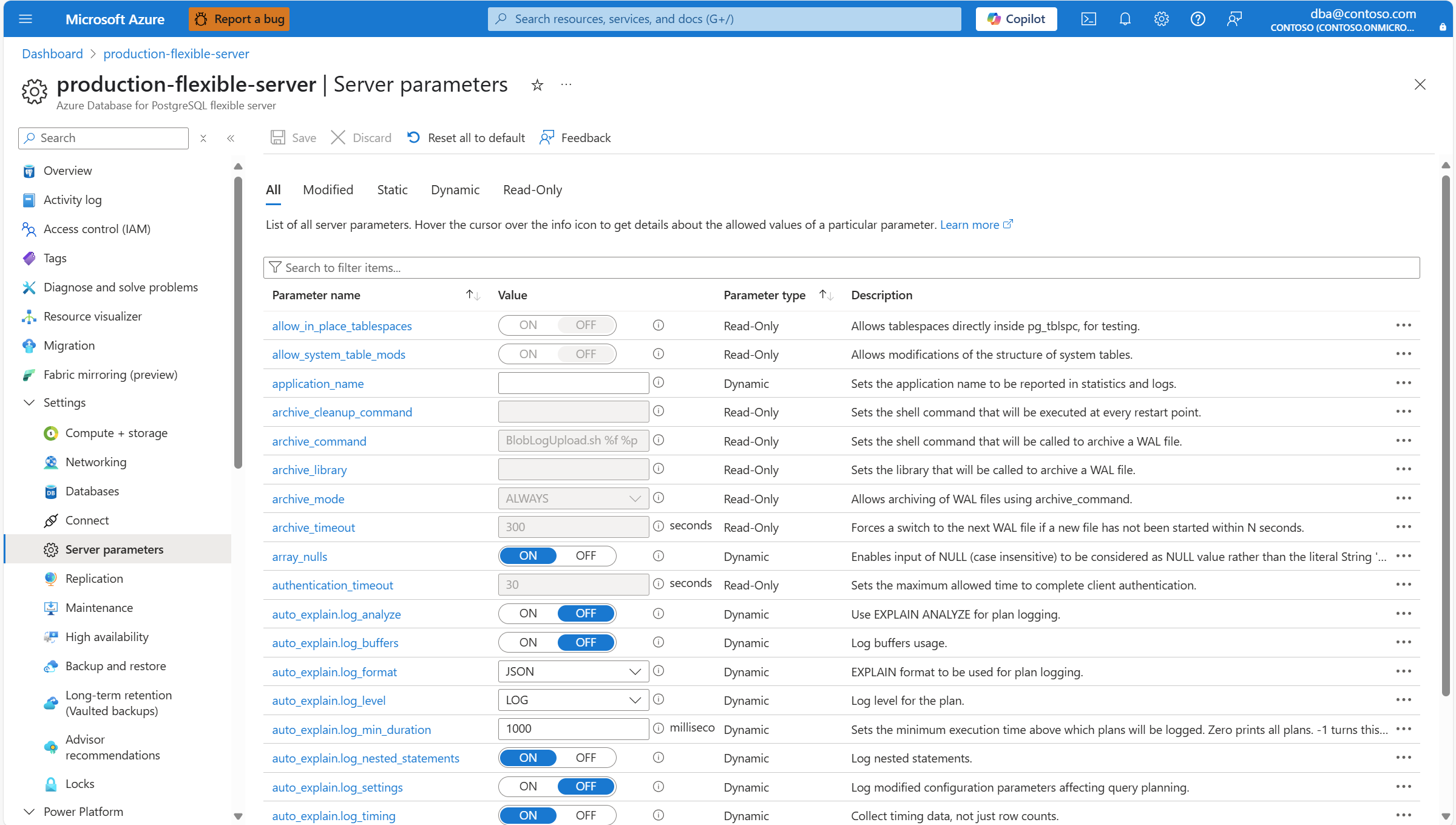 This article provides step-by-step instructions to list all server parameters of an Azure Database for PostgreSQL flexible server.