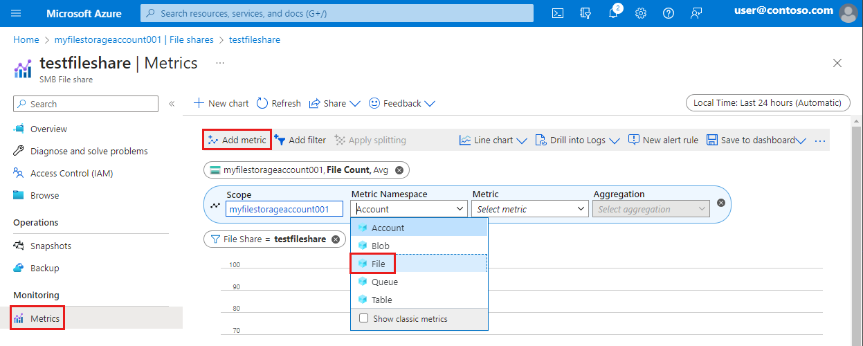 For a list of available metrics for Azure Files, see Azure Files monitoring data reference.