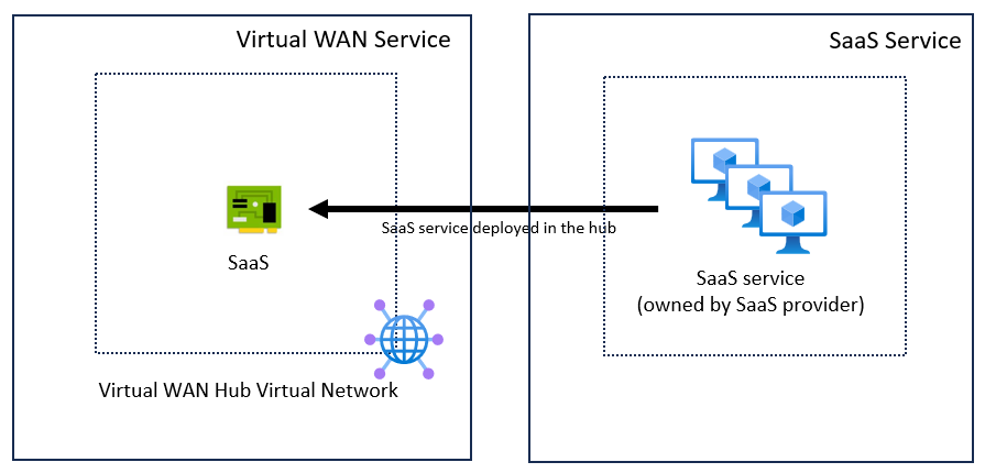 Software-as-a-service (SaaS) solutions in Virtual WAN are managed by SaaS providers and are deployed directly into your Virtual WAN hub. Software-as-a-service solutions are deployed and transacted through Azure Marketplace. SaaS solutions abstract the underlying infrastructure required to run networking and security software in Virtual WAN, providing customers with a cloud-native operational interface for programming and customizing SaaS configurations.