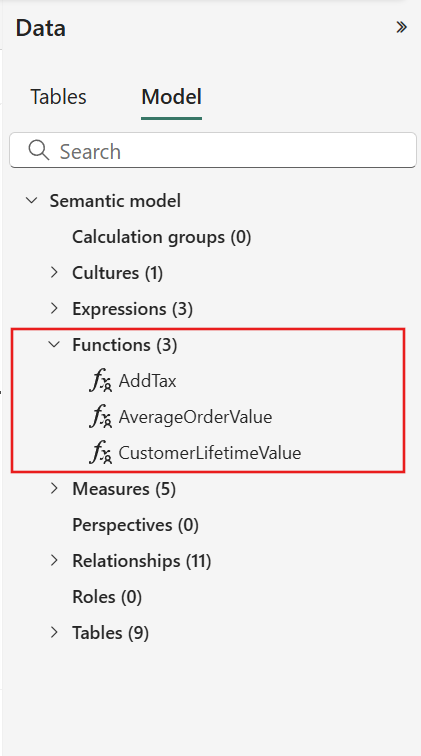 You can define, update, and evaluate user-defined functions in DAX query view. For additional information on DAX query view, see DAX query view.