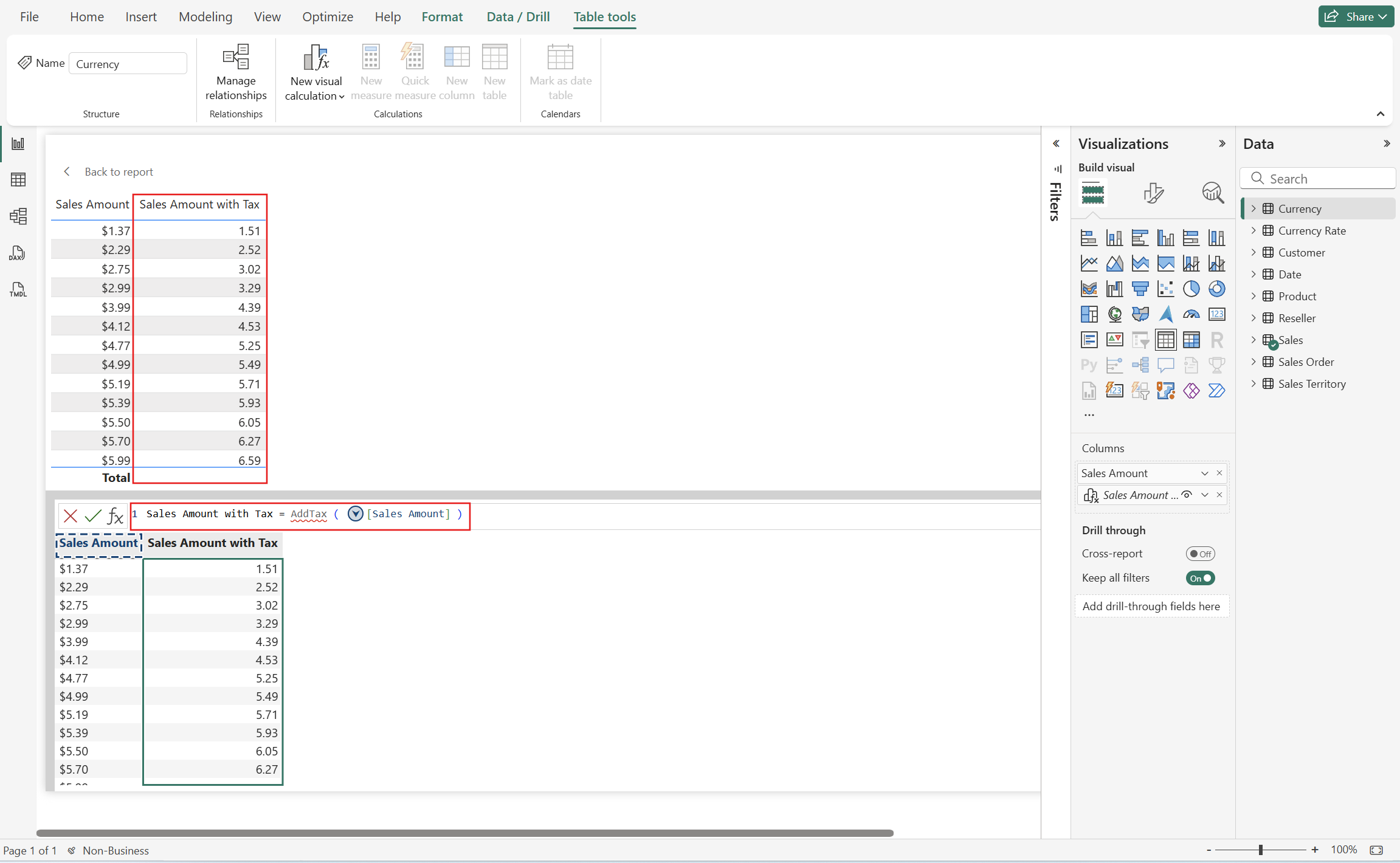 Sales Amount with Tax = CONVERT ( AddTax ( 'Sales'[Sales Amount] ), CURRENCY )