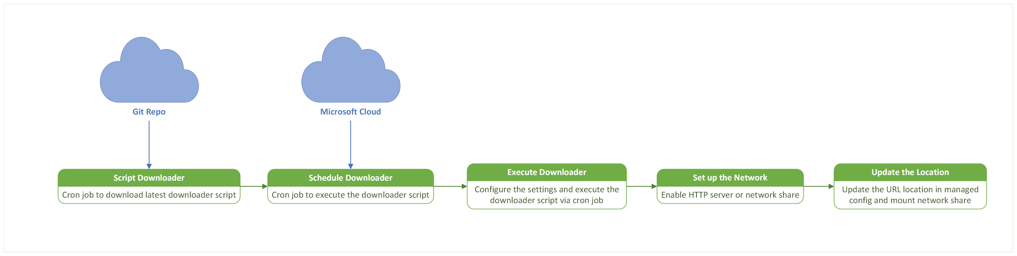 Organizations need to set up a mirror server, which is a local Web/NFS server that's reachable by the Microsoft cloud.