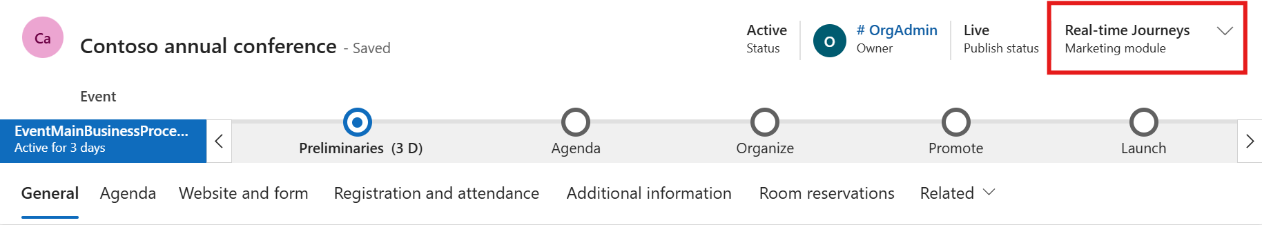- Outbound marketing form for event registration: Replace these forms with real-time journeys event registration forms. For more information, see Open the event management work area.