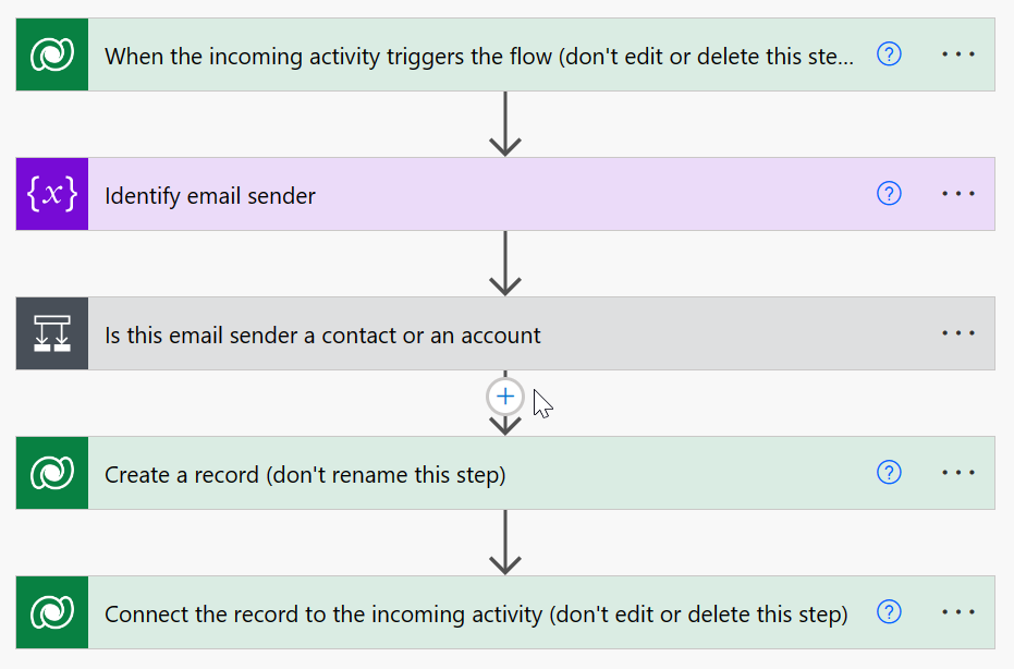 Now that the data model is ready, you can start editing the flow in Power Automate. You'll want to position our new steps just after the check on the email sender, and right before the case creation:
