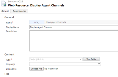 - Display Agent Channels (new_displayagentchannels) – custom Web Resource file containing the aforementioned JavaScript.