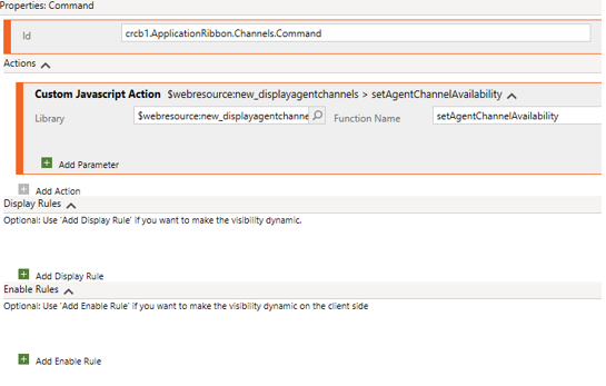 - Display Agent Channels (new_displayagentchannels) – custom Web Resource file containing the JavaScript code from the Model driven app custom button.