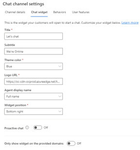 The following image illustrates the Chat widget tab.