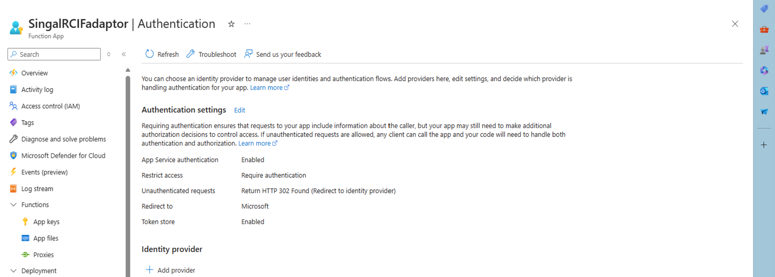 Enable authentication in Azure Functions. Add the identity provider that you specified as part of app registration in the earlier step.
