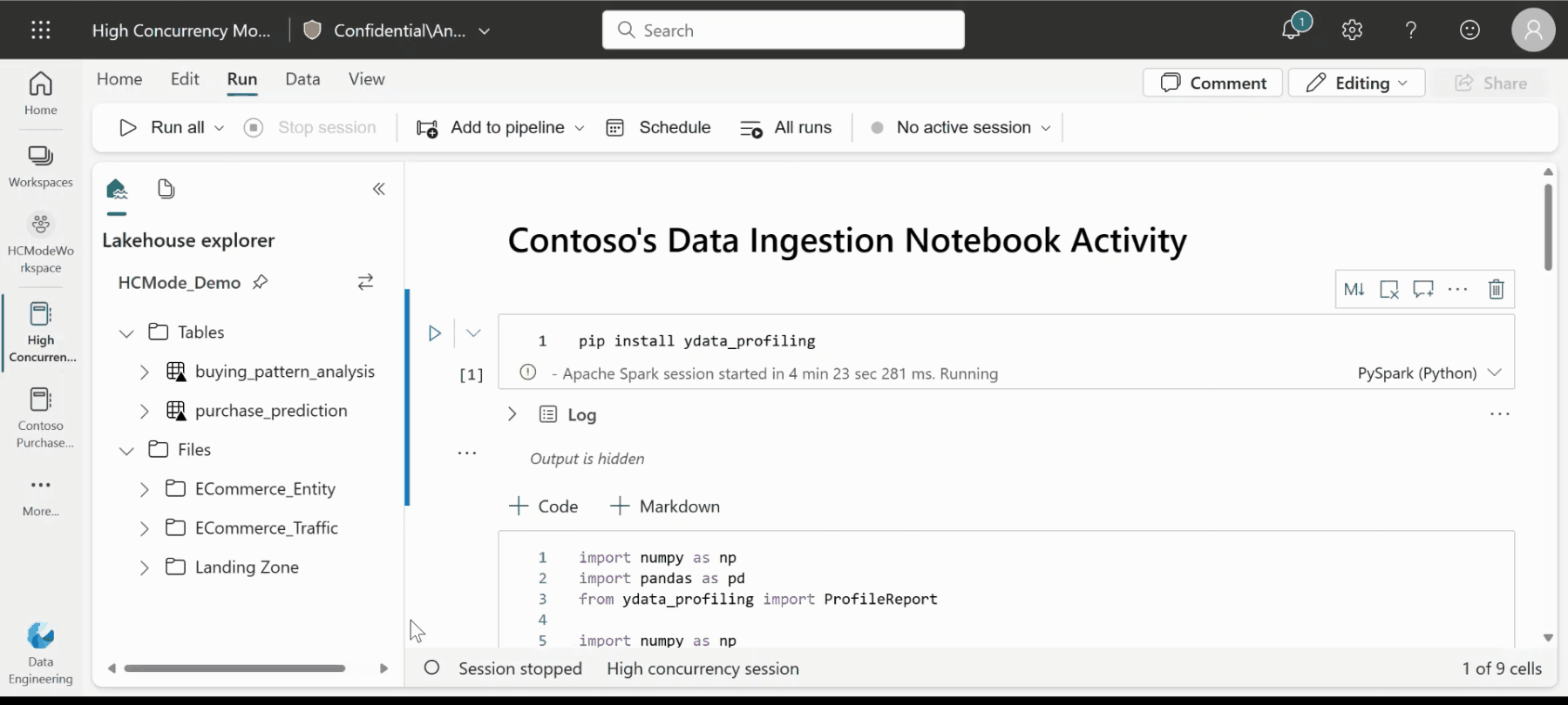 In this document, you get a basic understanding of a session sharing through high concurrency mode in notebooks. Advance to the next articles to learn how to create and get started with your own Data Engineering experiences using Lakehouse and Notebooks: