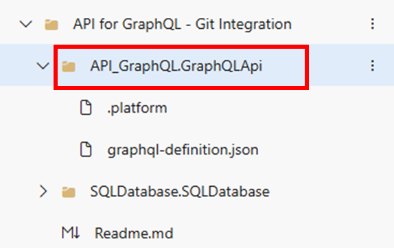 The following image is an example of the file structure of each API for GraphQL item in the Git repo: