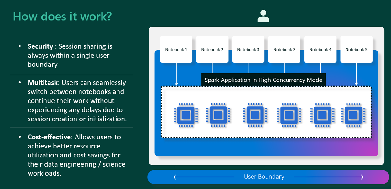 As part of Spark session initialization, a REPL core is created. Every time a new item starts sharing the same session and the executors are allocated in FAIR based manner to these notebooks running in these REPL cores inside the Spark application preventing starvation scenarios.