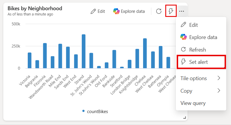 2. Select Set Alert from the tile's toolbar or in the More menu (...) at the top-right of the tile.