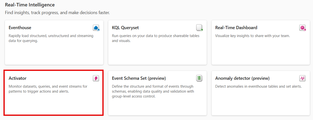 3. On the Create page, under the Real-Time Intelligence section, select Data Activator.