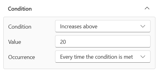 5. In the Condition section, you see the rule condition to monitor temperatures that are higher than 20 degrees Celsius.