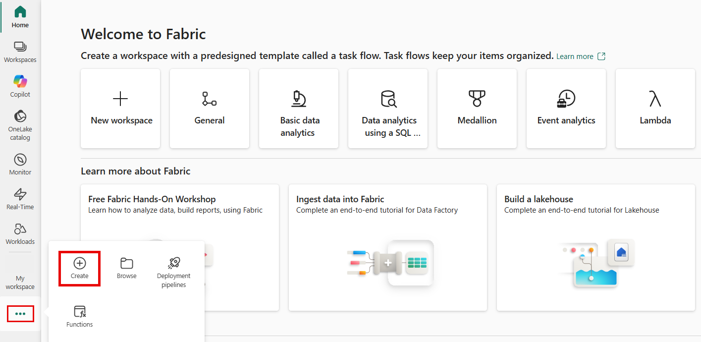 Before you begin, you need a workspace with a Fabric capacity. You can learn about Fabric workspaces in the Workspaces article. If you don't have Fabric, you're prompted to start a trial.