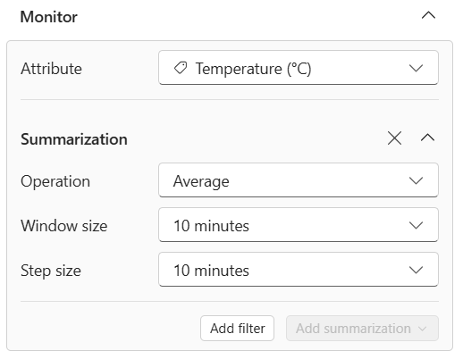 4. In the Monitor section, select Temperature. The temperature values come from the Temperature column in the Delivery events table. You can see the Temperature column in an earlier screenshot.