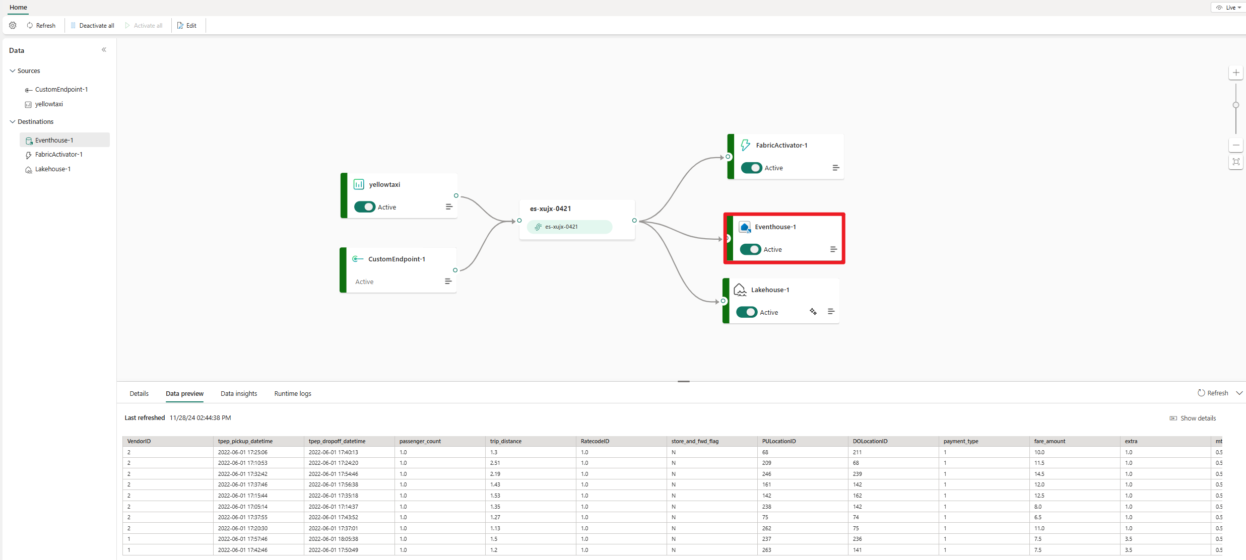 Destination data appears on the tab if data is inside the destination. For example, the following image shows the preview of an eventhouse.