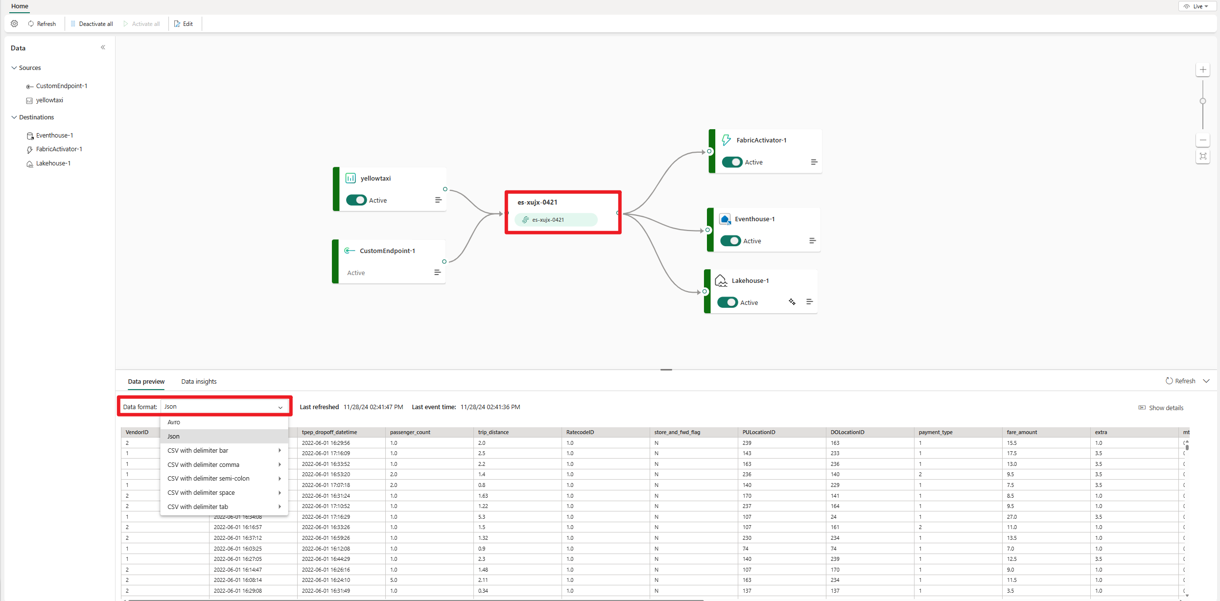 You can preview the data in your eventstream and see how different data sources are routed within your eventstream: