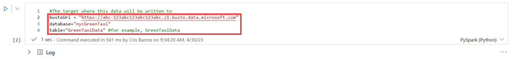 In KustoURI, paste the Query URI that you copied earlier instead of the placeholder text.