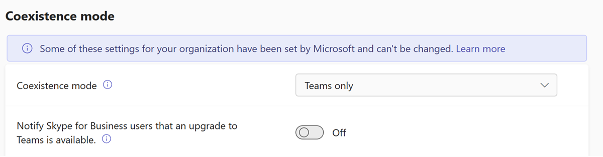 Coexistence mode Teams only Determines both routing of incoming calls and chats and the app that is used by the user to initiate chats and calls or to schedule meetings.