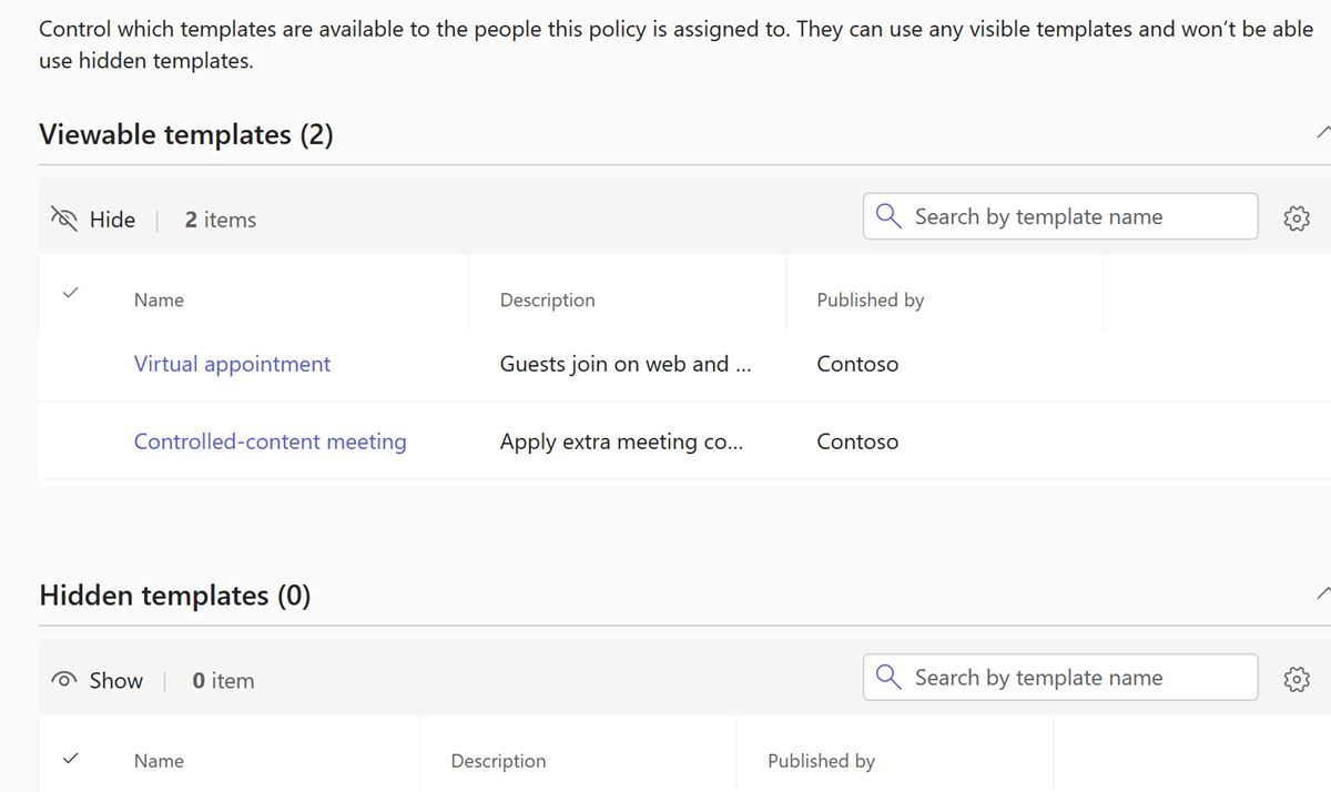 Template policies control what team templates users see when they create a new team. The following templates are available to users by default: