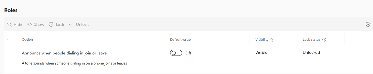 Welcome greeting Off When this setting is turned On, authorized users can update the welcome greeting for a call queue.