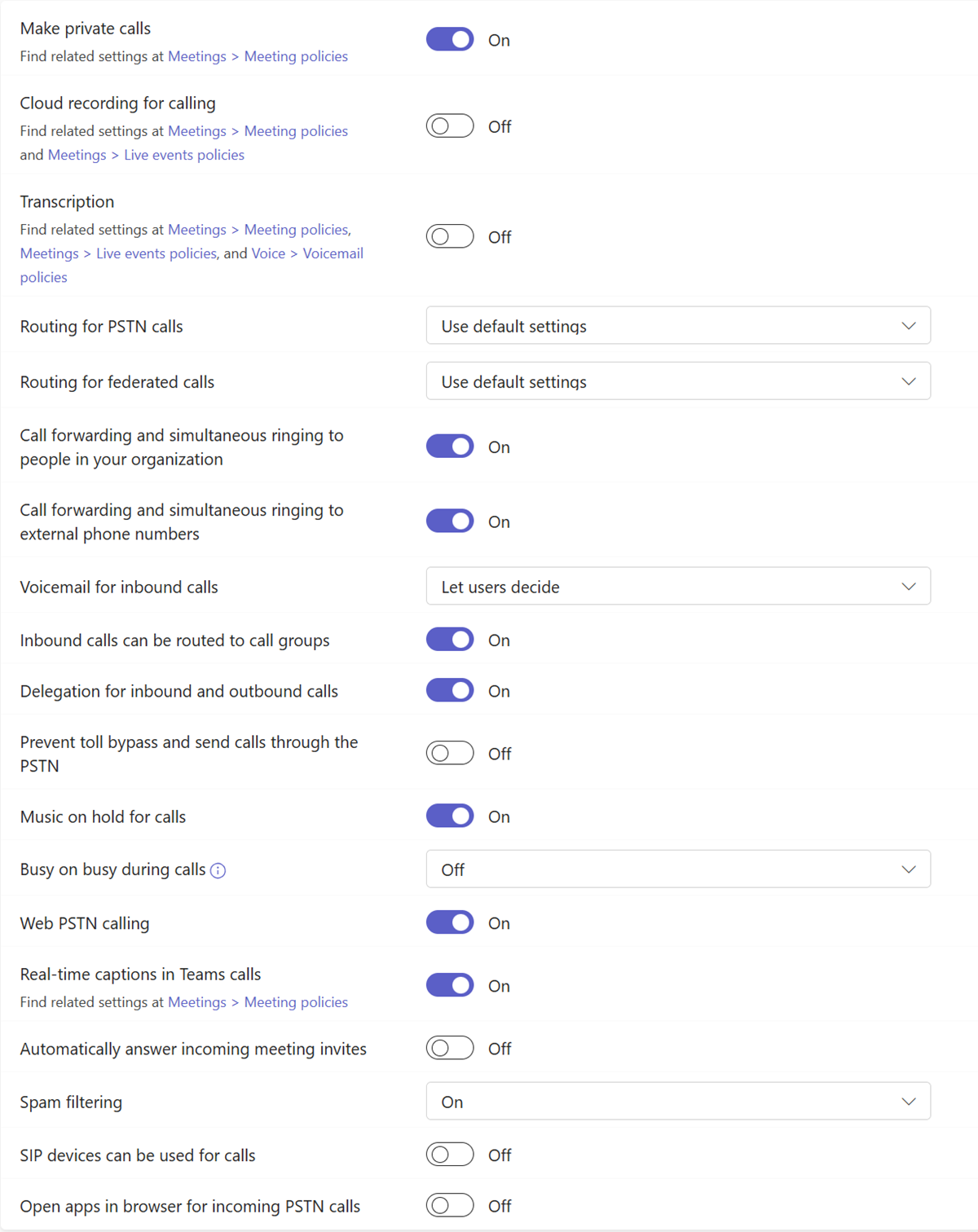 Web PSTN calling On This setting enables users to call PSTN numbers using the Teams web client.