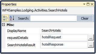 When using the workflow designer to edit arguments you can type expressions representing literal values into the property grid, or use variable names to reference an in-scope variable as shown in Figure 6, where emailResult and emailAddress are variables defined in the workflow.