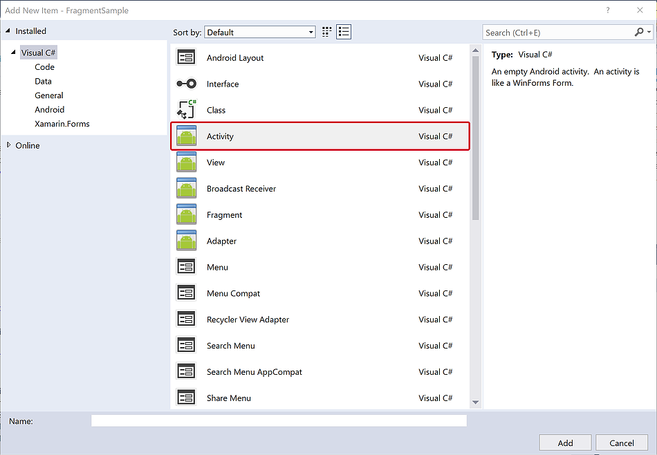 This is the first part of a walkthrough that will create a Xamarin.Android app that targets an Android device in portrait orientation. This walkthrough will discuss how to create fragments in Xamarin.Android and how to add them to a sample.