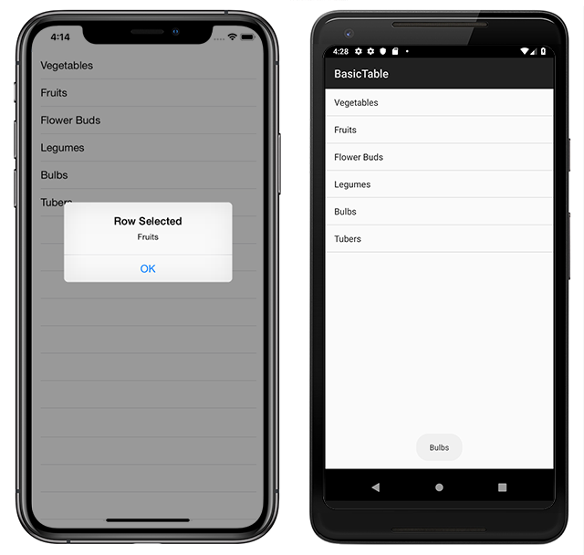 Screenshots of example Xamarin application in iOS and Android
