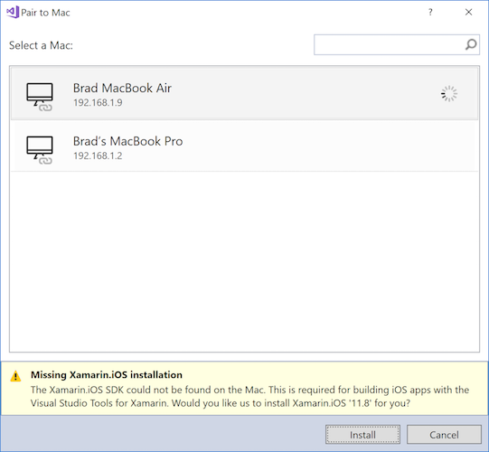 4. If it is on the same network as the Windows machine, the Mac should now be discoverable by Visual Studio 2019. If the Mac is still not discoverable, try manually adding a Mac or take a look at the troubleshooting guide.