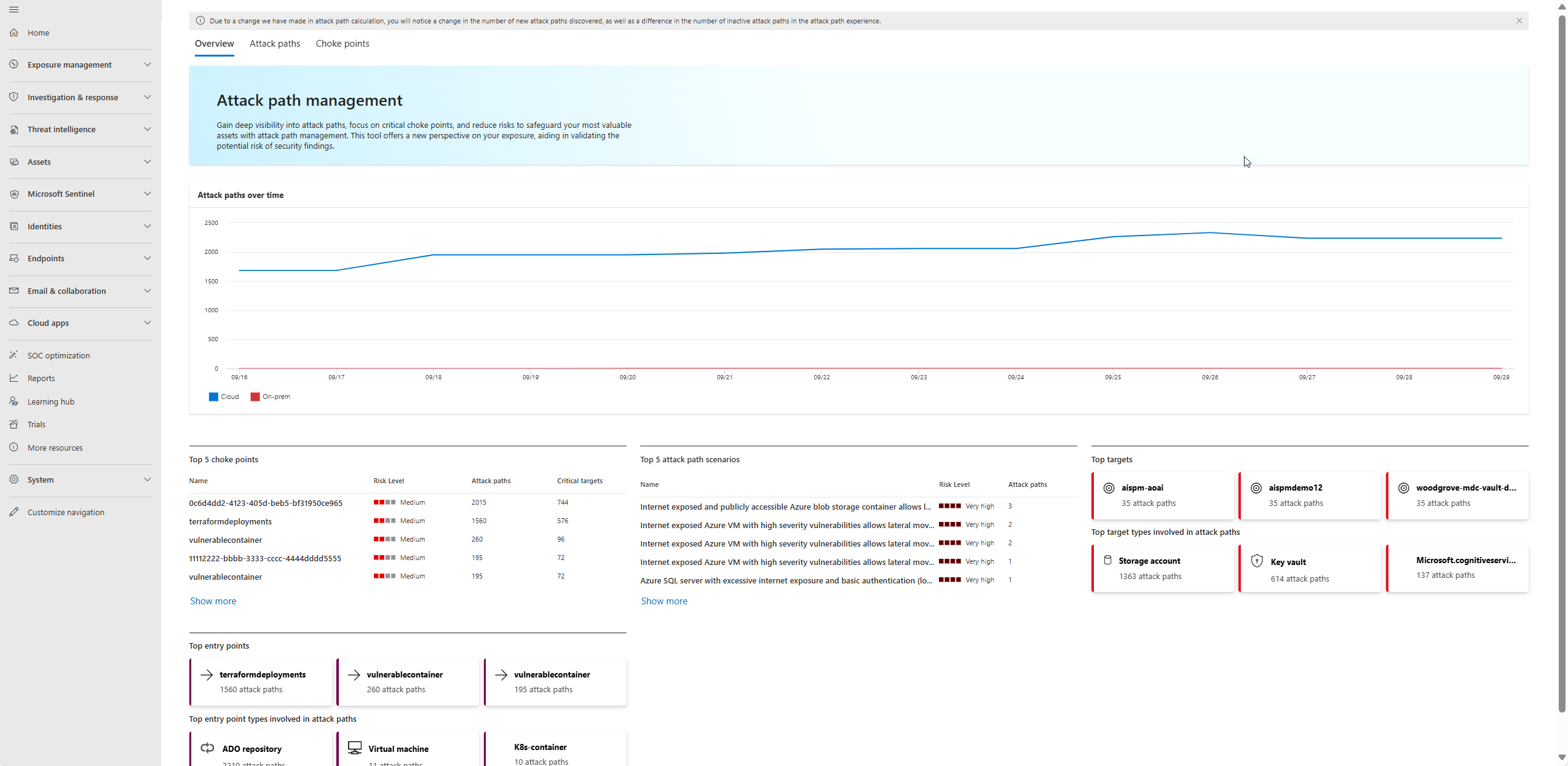 - The number of attack paths visible in the portal can fluctuate due to the dynamic nature of IT environments. Our system dynamically generates attack paths based on the real-time conditions of each customer's environment. Changes such as the addition or removal of assets, updates to configurations, a user logging on or off from a machine, a user added or removed to a group, and the implementation of new network segmentation or security policies can all influence the number and types of attack paths identified.