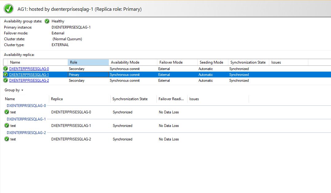 5. Observe that the role changed to Primary for DxEnterprisesqlag-1